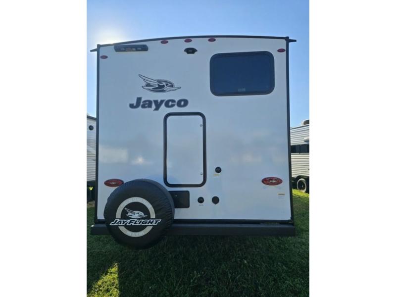 The Jayco Jay Flight SLX travel trailer is quite easy to own because it is lightweight for an easier towing experience. Built on a fully integrated A-frame with galvanized-steel, impact-resistant wheel wells, the Jay Flight SLX has quality at its very foundation. That quality continues on to the electric self-adjusting brakes, easy-lube hubs, Magnum Truss roof system, and LP quick connect. Some of what the mandatory Customer Value Package includes is backup camera prep, Keyed-Alike entry and baggage doors, and an on-demand tankless water heater.