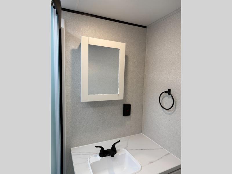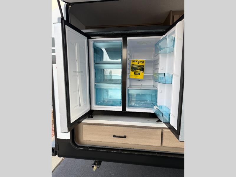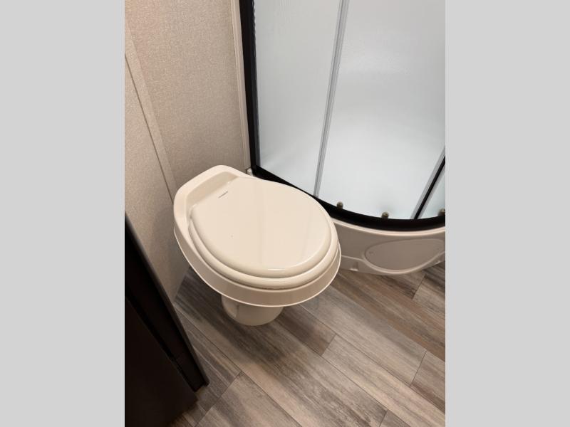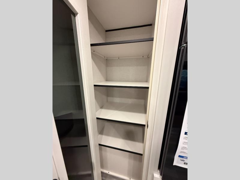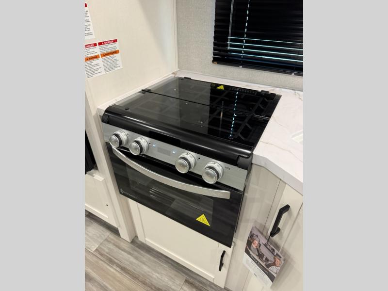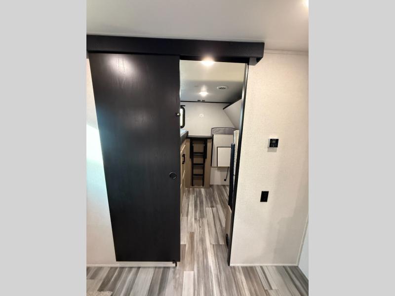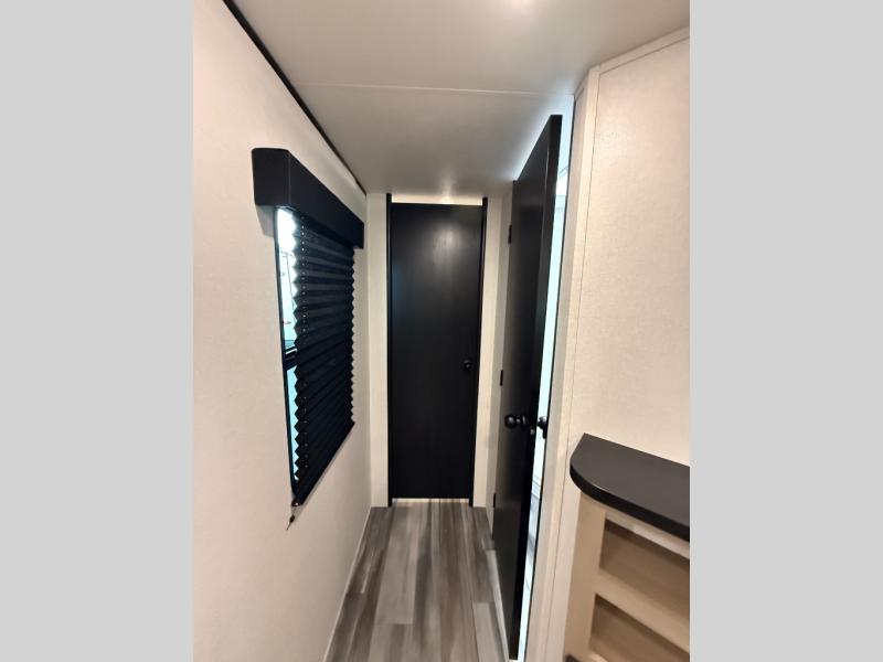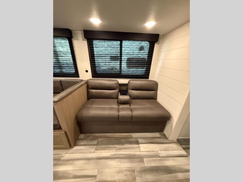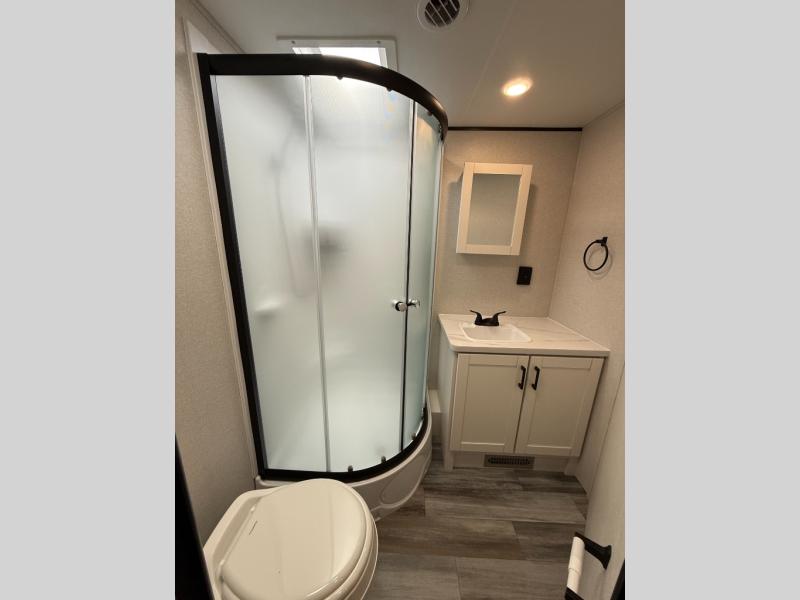 It's time to ditch that old tent and upgrade to this spacious travel trailer! There is a rear private bunkhouse includes a flip-up bunk over a 28" x 76" bunk, plus a bunk across the room and a wardrobe. You'll enjoy the front private bedroom all to yourselves with a queen bed and dual wardrobes, and the full bath is close by for easy nighttime use. A U-shaped dinette slide and sofa in the main living area provide your crew with space to relax and dine together, and the fully equipped kitchen lets you cook up your best meals. Outside, you'll find exterior storage, an 18' power awning, plus an outdoor refrigerator, shelf, and TV prep!