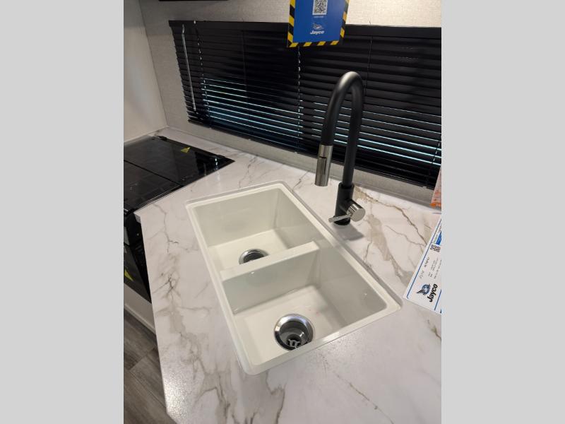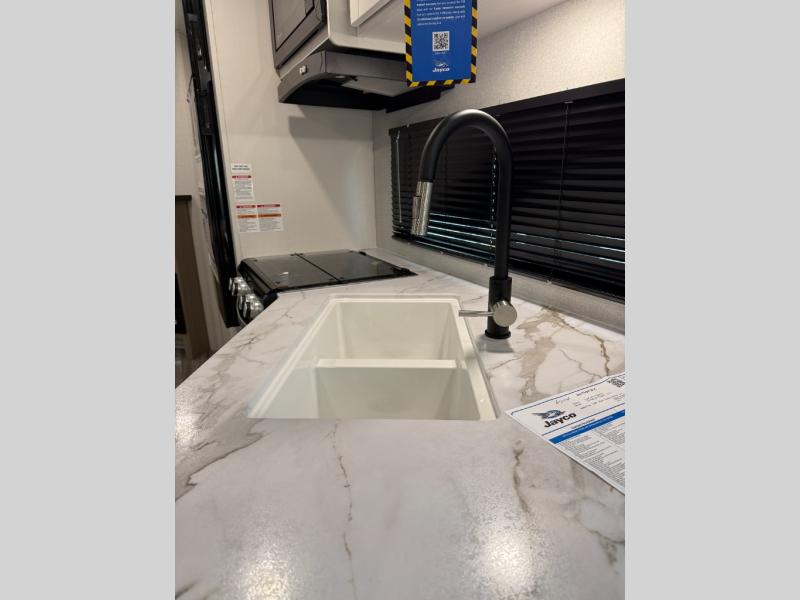 The Jayco Jay Flight SLX travel trailer is quite easy to own because it is lightweight for an easier towing experience. Built on a fully integrated A-frame with galvanized-steel, impact-resistant wheel wells, the Jay Flight SLX has quality at its very foundation. That quality continues on to the electric self-adjusting brakes, easy-lube hubs, Magnum Truss roof system, and LP quick connect. Some of what the mandatory Customer Value Package includes is backup camera prep, Keyed-Alike entry and baggage doors, and an on-demand tankless water heater.