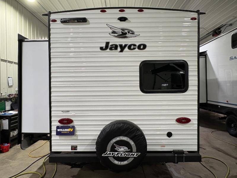 The Jayco Jay Flight SLX travel trailer is quite easy to own because it is lightweight for an easier towing experience. Built on a fully integrated A-frame with galvanized-steel, impact-resistant wheel wells, the Jay Flight SLX has quality at its very foundation. That quality continues on to the electric self-adjusting brakes, easy-lube hubs, Magnum Truss roof system, and LP quick connect. Some of what the mandatory Customer Value Package includes is backup camera prep, Keyed-Alike entry and baggage doors, and an on-demand tankless water heater.