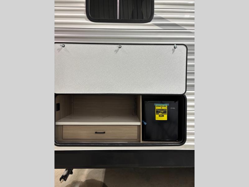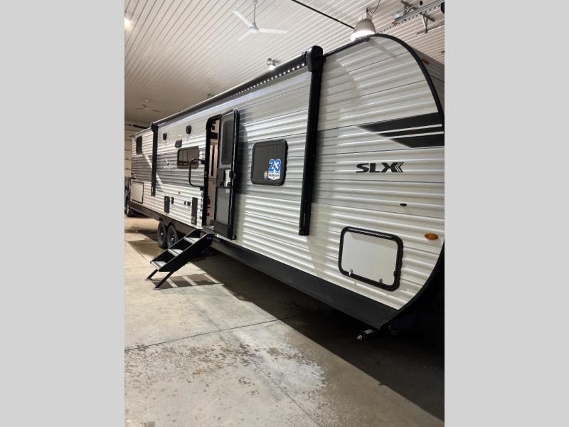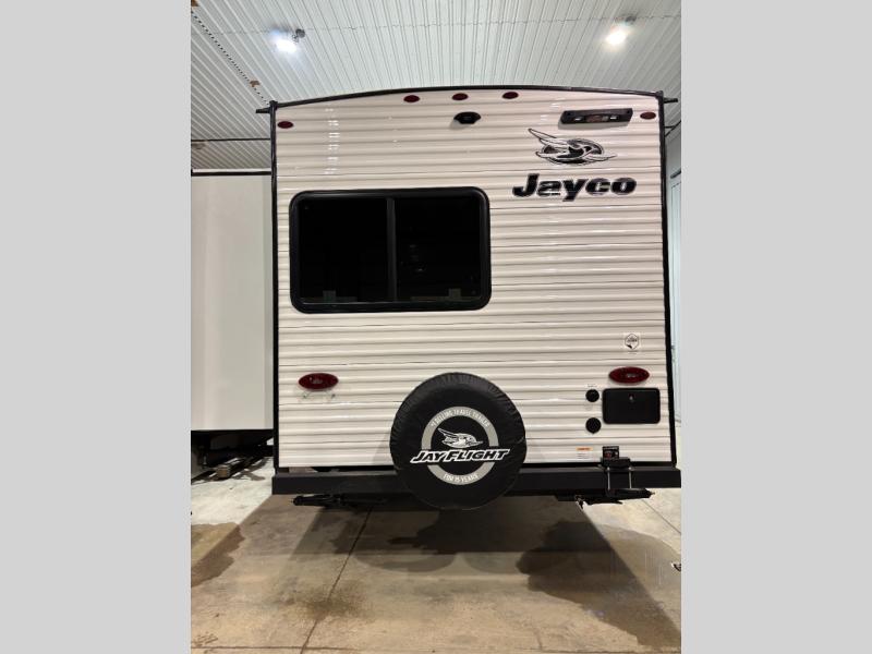 The Jayco Jay Flight SLX travel trailer is quite easy to own because it is lightweight for an easier towing experience. Built on a fully integrated A-frame with galvanized-steel, impact-resistant wheel wells, the Jay Flight SLX has quality at its very foundation. That quality continues on to the electric self-adjusting brakes, easy-lube hubs, Magnum Truss roof system, and LP quick connect. Some of what the mandatory Customer Value Package includes is backup camera prep, Keyed-Alike entry and baggage doors, and an on-demand tankless water heater.