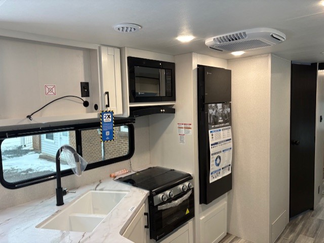 The Jayco Jay Flight SLX travel trailer is quite easy to own because it is lightweight for an easier towing experience. Built on a fully integrated A-frame with galvanized-steel, impact-resistant wheel wells, the Jay Flight SLX has quality at its very foundation. That quality continues on to the electric self-adjusting brakes, easy-lube hubs, Magnum Truss roof system, and LP quick connect. Some of what the mandatory Customer Value Package includes is backup camera prep, Keyed-Alike entry and baggage doors, and an on-demand tankless water heater.