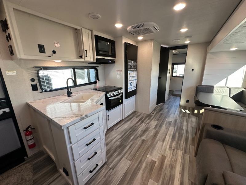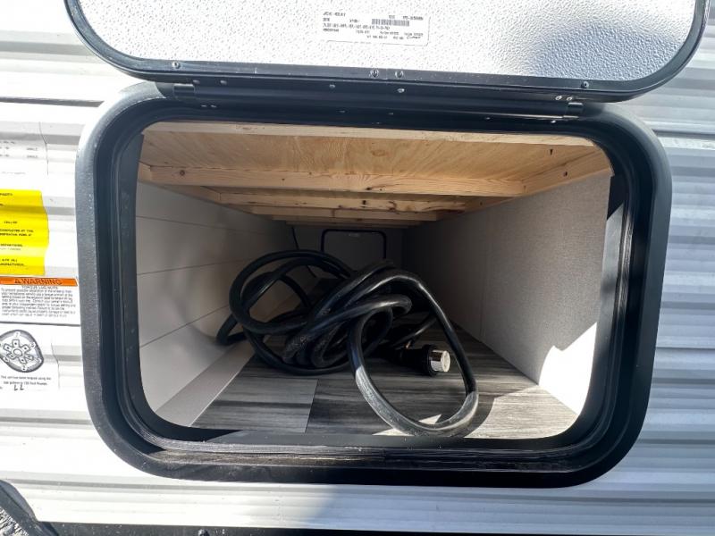 The Jayco Jay Flight SLX travel trailer is quite easy to own because it is lightweight for an easier towing experience. Built on a fully integrated A-frame with galvanized-steel, impact-resistant wheel wells, the Jay Flight SLX has quality at its very foundation. That quality continues on to the electric self-adjusting brakes, easy-lube hubs, Magnum Truss roof system, and LP quick connect. Some of what the mandatory Customer Value Package includes is backup camera prep, Keyed-Alike entry and baggage doors, and an on-demand tankless water heater.