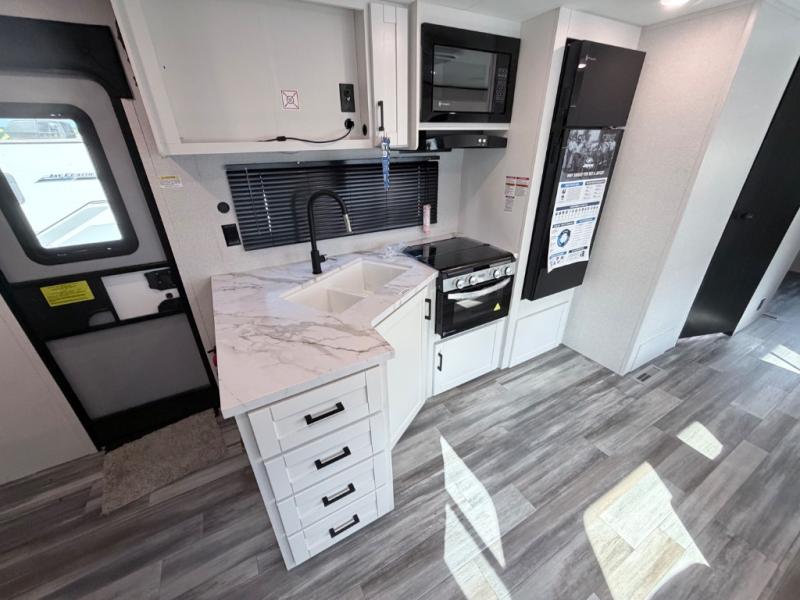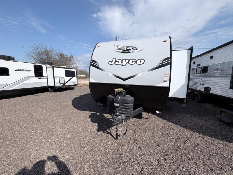 The Jayco Jay Flight SLX travel trailer is quite easy to own because it is lightweight for an easier towing experience. Built on a fully integrated A-frame with galvanized-steel, impact-resistant wheel wells, the Jay Flight SLX has quality at its very foundation. That quality continues on to the electric self-adjusting brakes, easy-lube hubs, Magnum Truss roof system, and LP quick connect. Some of what the mandatory Customer Value Package includes is backup camera prep, Keyed-Alike entry and baggage doors, and an on-demand tankless water heater.
