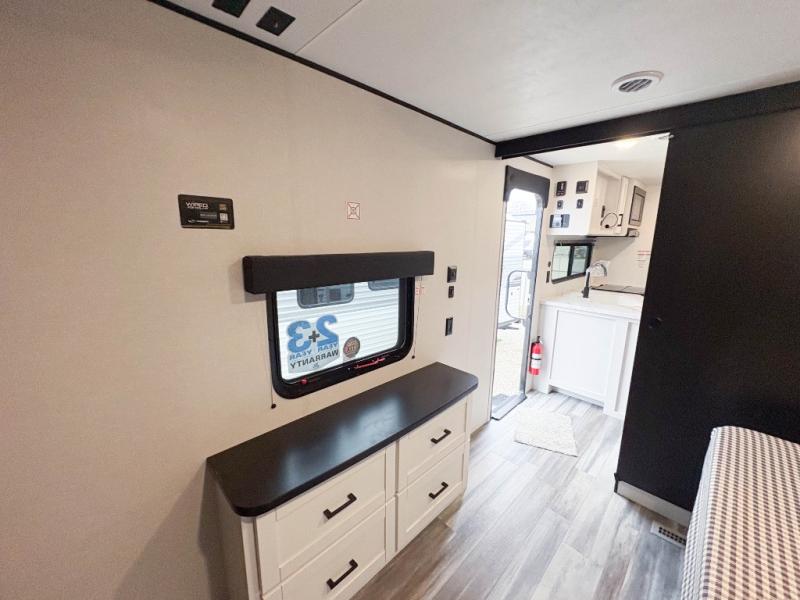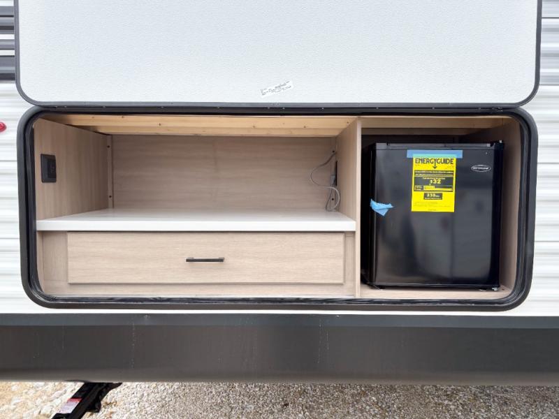 The Jayco Jay Flight SLX travel trailer is quite easy to own because it is lightweight for an easier towing experience. Built on a fully integrated A-frame with galvanized-steel, impact-resistant wheel wells, the Jay Flight SLX has quality at its very foundation. That quality continues on to the electric self-adjusting brakes, easy-lube hubs, Magnum Truss roof system, and LP quick connect. Some of what the mandatory Customer Value Package includes is backup camera prep, Keyed-Alike entry and baggage doors, and an on-demand tankless water heater.