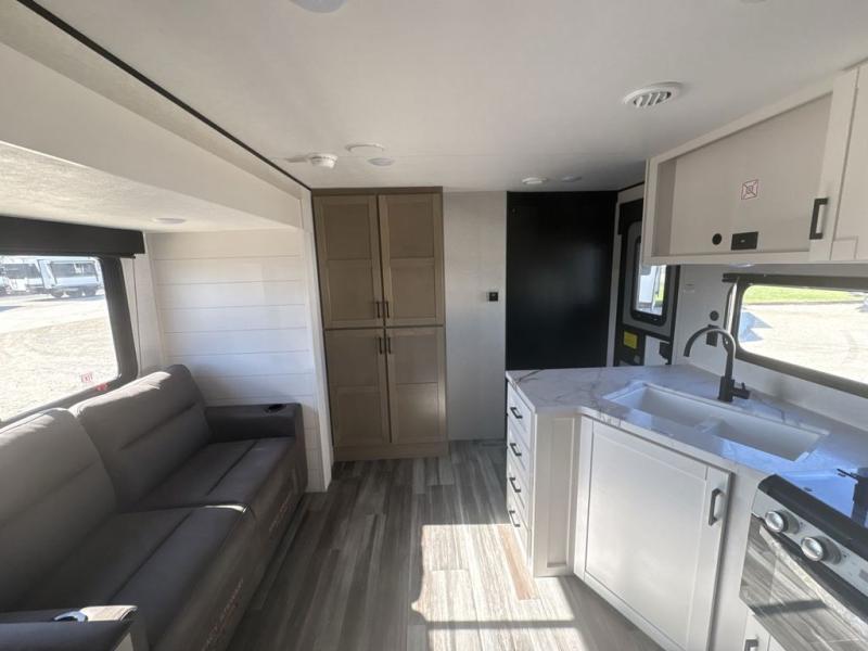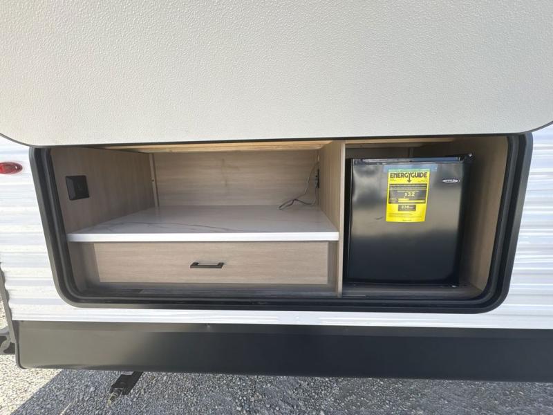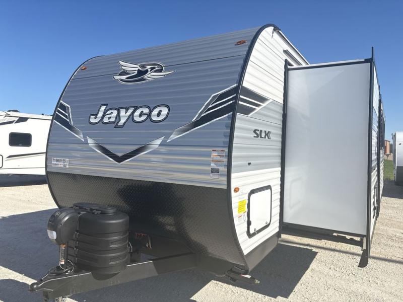 The Jayco Jay Flight SLX travel trailer is quite easy to own because it is lightweight for an easier towing experience. Built on a fully integrated A-frame with galvanized-steel, impact-resistant wheel wells, the Jay Flight SLX has quality at its very foundation. That quality continues on to the electric self-adjusting brakes, easy-lube hubs, Magnum Truss roof system, and LP quick connect. Some of what the mandatory Customer Value Package includes is backup camera prep, Keyed-Alike entry and baggage doors, and an on-demand tankless water heater.