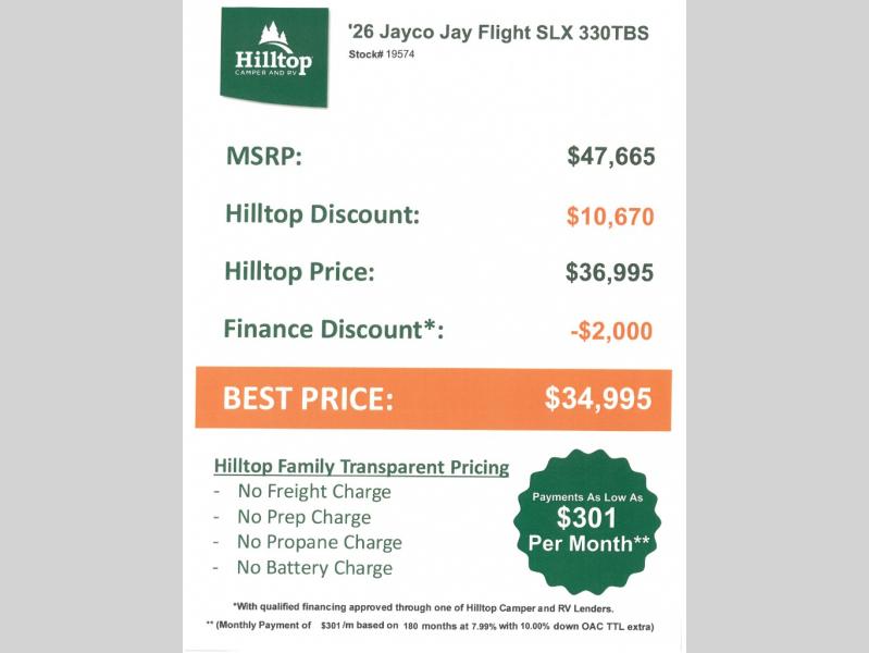 New 2026 Jayco Jay Flight SLX 330TBS Travel Trailer