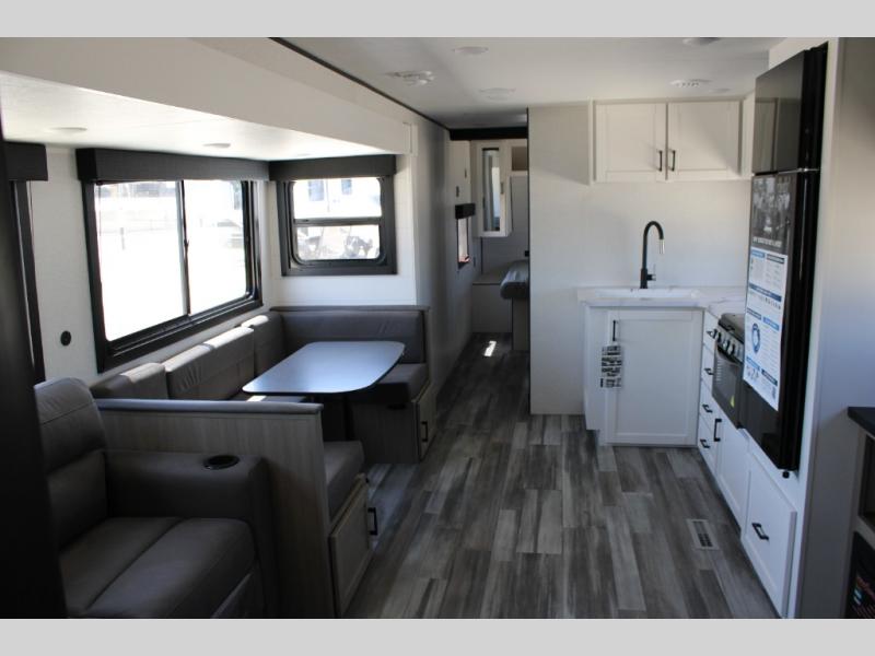 Double-Size Bunks, U-Shaped Dinette, Full Bath, Exterior Fridge!