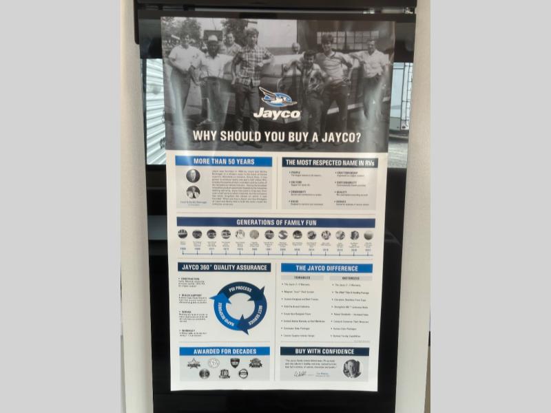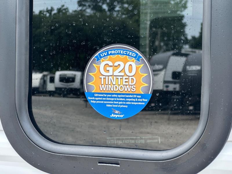 The Jayco Jay Flight SLX travel trailer is quite easy to own because it is lightweight for an easier towing experience. Built on a fully integrated A-frame with galvanized-steel, impact-resistant wheel wells, the Jay Flight SLX has quality at its very foundation. That quality continues on to the electric self-adjusting brakes, easy-lube hubs, Magnum Truss roof system, and LP quick connect. Some of what the mandatory Customer Value Package includes is backup camera prep, Keyed-Alike entry and baggage doors, marine grade exterior speakers, and an on-demand tankless water heater.