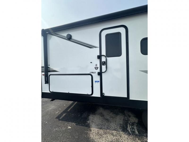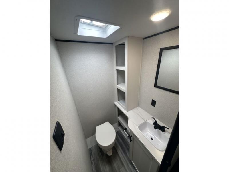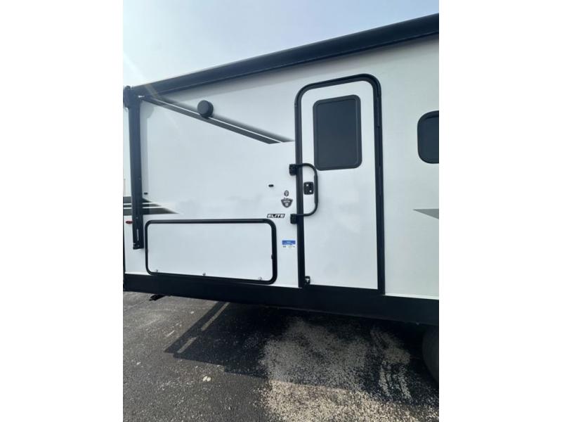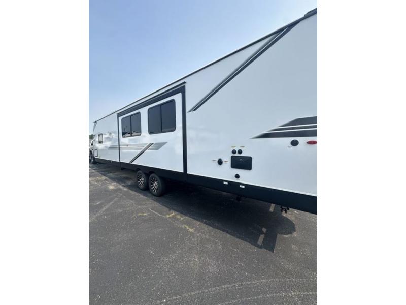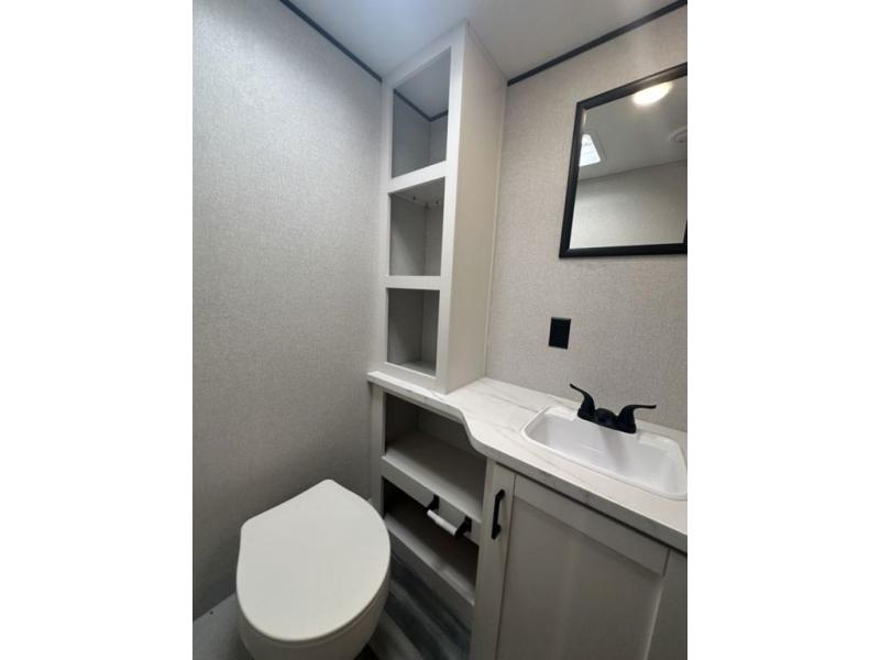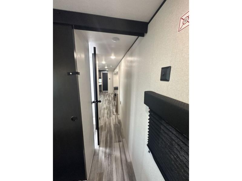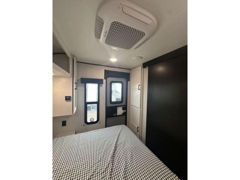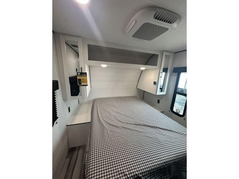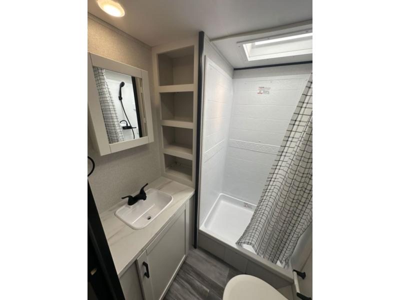 It's time to ditch that old tent and upgrade to this spacious travel trailer! The littles ones or your guests will love the double-size bunks in the rear bunkhouse, along with a half bath and storage space for their things. You'll enjoy the front private bedroom all to yourselves with a queen bed and dual wardrobes, and the full bath is close by for easy nighttime use. A U-shaped dinette slide and sofa in the main living area provide your crew with space to relax and dine together, and the fully equipped kitchen lets you cook up your best meals. Outside, you'll find exterior storage, a 20' power awning, plus an exterior refrigerator, LP Quick Connect, and an exterior spray port!