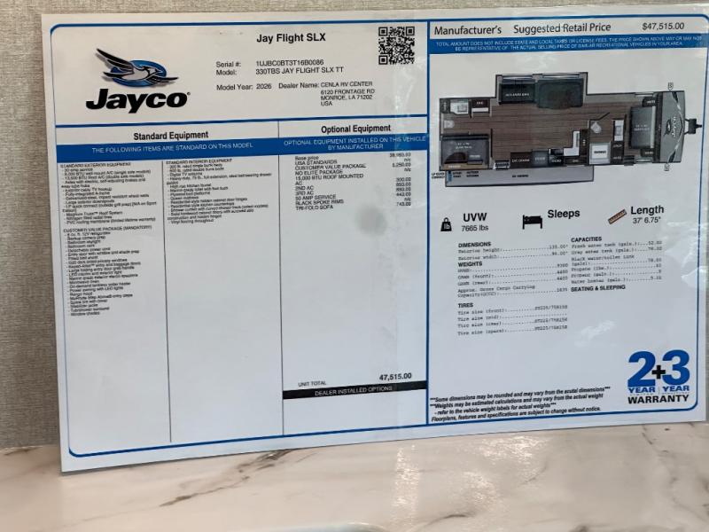 New 2026 Jayco Jay Flight SLX 330TBS Travel Trailer