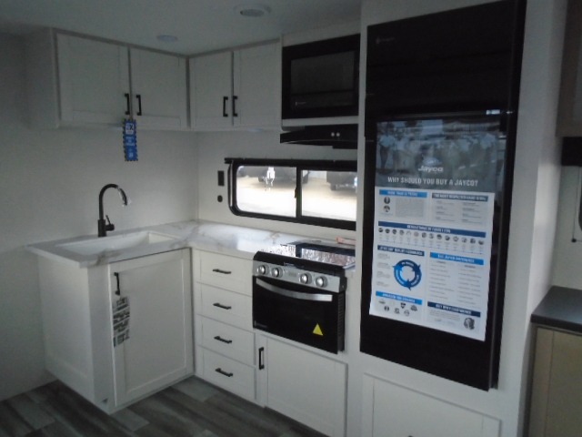 The Jayco Jay Flight SLX travel trailer is quite easy to own because it is lightweight for an easier towing experience. Built on a fully integrated A-frame with galvanized-steel, impact-resistant wheel wells, the Jay Flight SLX has quality at its very foundation. That quality continues on to the electric self-adjusting brakes, easy-lube hubs, Magnum Truss roof system, and LP quick connect. Some of what the mandatory Customer Value Package includes is backup camera prep, Keyed-Alike entry and baggage doors, and an on-demand tankless water heater.