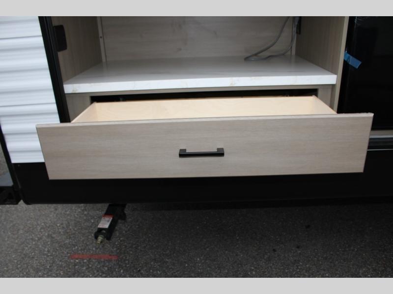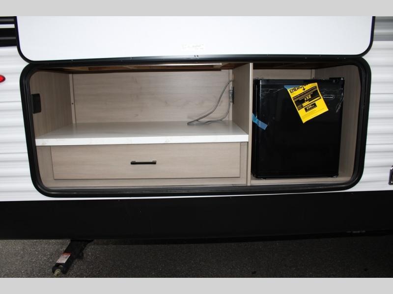The Jayco Jay Flight SLX travel trailer is quite easy to own because it is lightweight for an easier towing experience. Built on a fully integrated A-frame with galvanized-steel, impact-resistant wheel wells, the Jay Flight SLX has quality at its very foundation. That quality continues on to the electric self-adjusting brakes, easy-lube hubs, Magnum Truss roof system, and LP quick connect. Some of what the mandatory Customer Value Package includes is backup camera prep, Keyed-Alike entry and baggage doors, marine grade exterior speakers, and an on-demand tankless water heater.