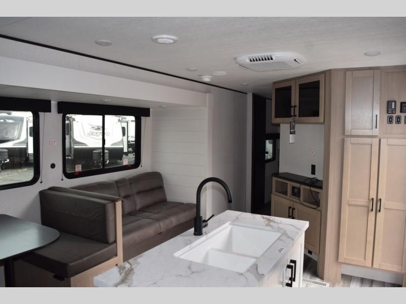 The Jayco Jay Flight SLX travel trailer is quite easy to own because it is lightweight for an easier towing experience. Built on a fully integrated A-frame with galvanized-steel, impact-resistant wheel wells, the Jay Flight SLX has quality at its very foundation. That quality continues on to the electric self-adjusting brakes, easy-lube hubs, Magnum Truss roof system, and LP quick connect. Some of what the mandatory Customer Value Package includes is backup camera prep, Keyed-Alike entry and baggage doors, marine grade exterior speakers, and an on-demand tankless water heater.