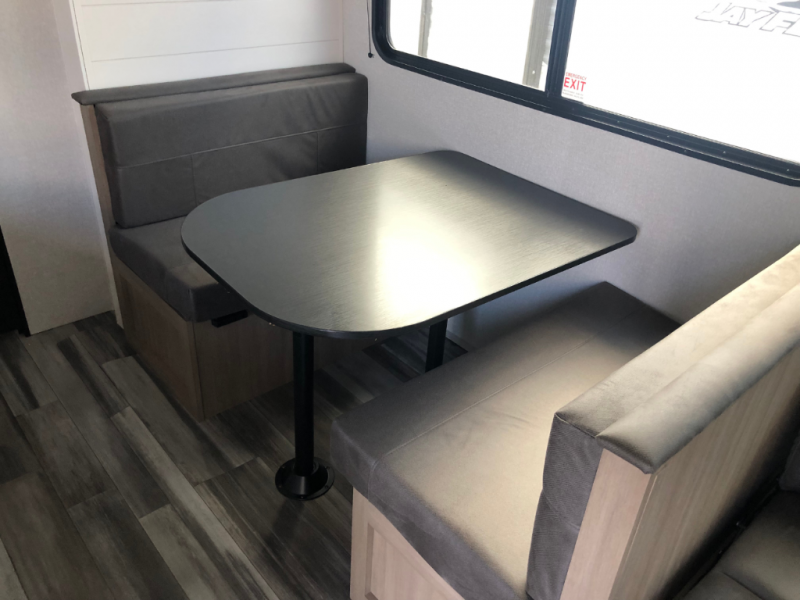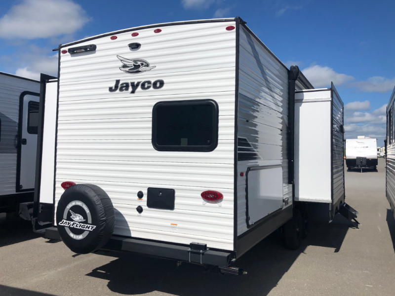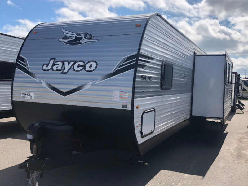The Jayco Jay Flight SLX travel trailer is quite easy to own because it is lightweight for an easier towing experience. Built on a fully integrated A-frame with galvanized-steel, impact-resistant wheel wells, the Jay Flight SLX has quality at its very foundation. That quality continues on to the electric self-adjusting brakes, easy-lube hubs, Magnum Truss roof system, and LP quick connect. Some of what the mandatory Customer Value Package includes is backup camera prep, Keyed-Alike entry and baggage doors, and an on-demand tankless water heater.