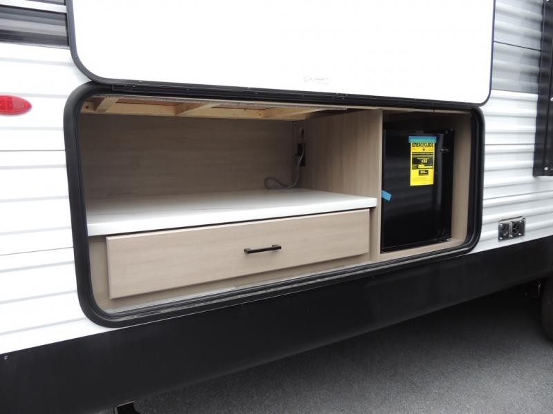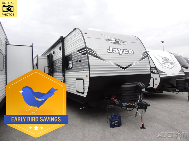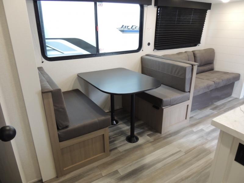 The Jayco Jay Flight SLX travel trailer is quite easy to own because it is lightweight for an easier towing experience. Built on a fully integrated A-frame with galvanized-steel, impact-resistant wheel wells, the Jay Flight SLX has quality at its very foundation. That quality continues on to the electric self-adjusting brakes, easy-lube hubs, Magnum Truss roof system, and LP quick connect. Some of what the mandatory Customer Value Package includes is backup camera prep, Keyed-Alike entry and baggage doors, and an on-demand tankless water heater.