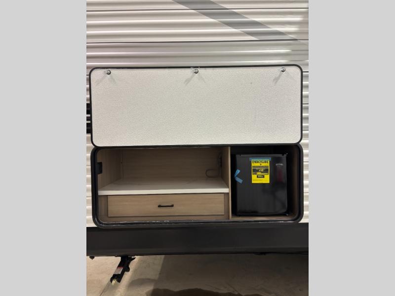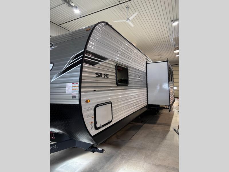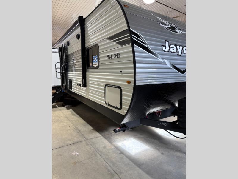 The Jayco Jay Flight SLX travel trailer is quite easy to own because it is lightweight for an easier towing experience. Built on a fully integrated A-frame with galvanized-steel, impact-resistant wheel wells, the Jay Flight SLX has quality at its very foundation. That quality continues on to the electric self-adjusting brakes, easy-lube hubs, Magnum Truss roof system, and LP quick connect. Some of what the mandatory Customer Value Package includes is backup camera prep, Keyed-Alike entry and baggage doors, and an on-demand tankless water heater.