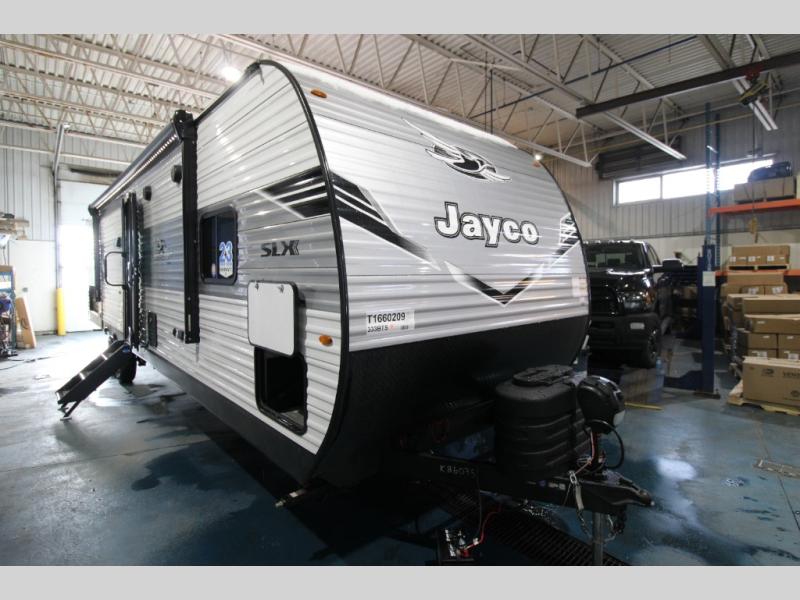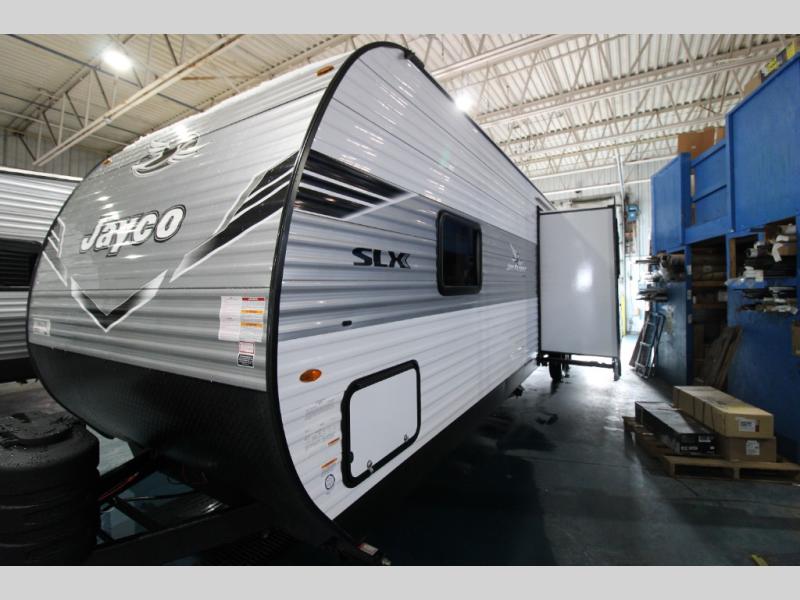 The Jayco Jay Flight SLX travel trailer is quite easy to own because it is lightweight for an easier towing experience. Built on a fully integrated A-frame with galvanized-steel, impact-resistant wheel wells, the Jay Flight SLX has quality at its very foundation. That quality continues on to the electric self-adjusting brakes, easy-lube hubs, Magnum Truss roof system, and LP quick connect. Some of what the mandatory Customer Value Package includes is backup camera prep, Keyed-Alike entry and baggage doors, and an on-demand tankless water heater.