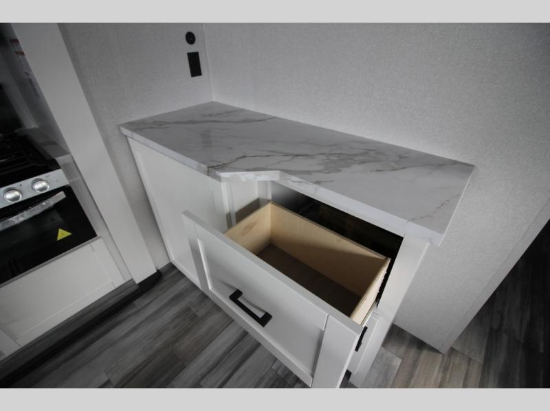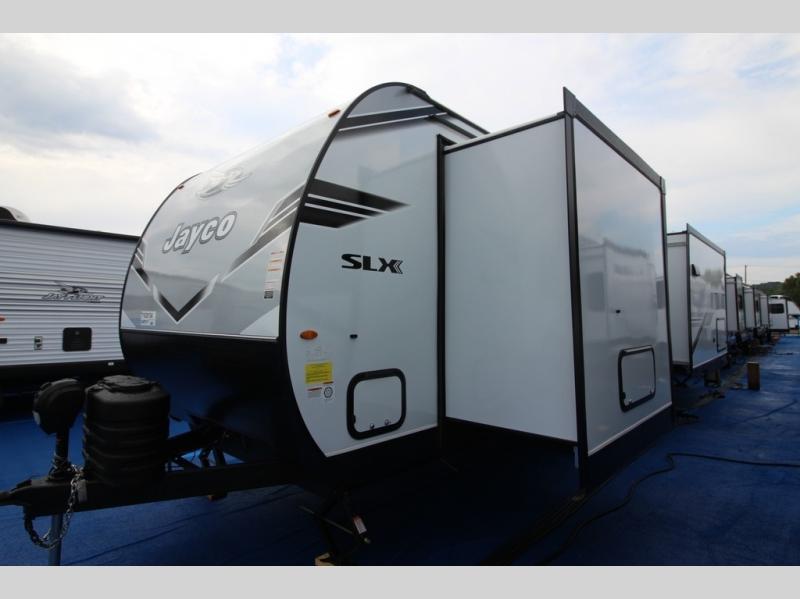 The Jayco Jay Flight SLX travel trailer is quite easy to own because it is lightweight for an easier towing experience. Built on a fully integrated A-frame with galvanized-steel, impact-resistant wheel wells, the Jay Flight SLX has quality at its very foundation. That quality continues on to the electric self-adjusting brakes, easy-lube hubs, Magnum Truss roof system, and LP quick connect. Some of what the mandatory Customer Value Package includes is backup camera prep, Keyed-Alike entry and baggage doors, marine grade exterior speakers, and an on-demand tankless water heater.