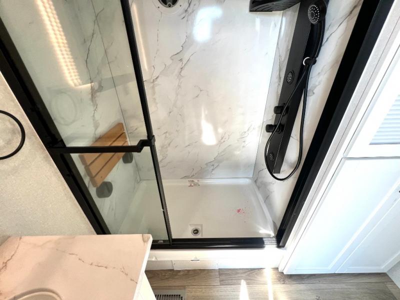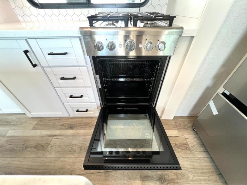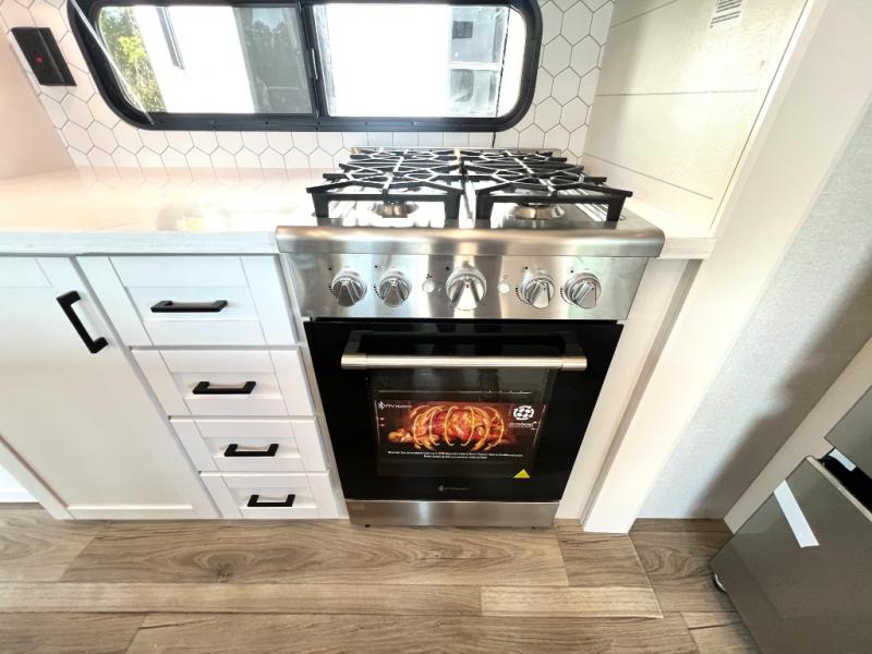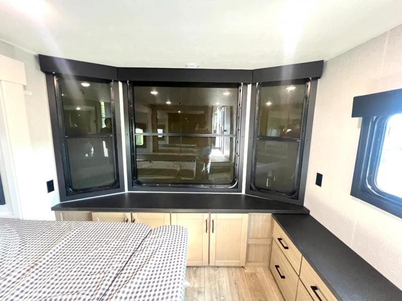Each Jay Flight Bungalow travel trailer by Jayco features a Magnum Truss roof system, 12 in. I-Class cambered structural steel I-beams, and an insulated and enclosed underbelly for added protection against the elements. You will love the open living space and the atrium-style front wall, along with oversized side windows and hardwood look vinyl flooring. An on-demand tankless water heater will provide endless hot showers, and you're sure to stay comfortable with two A/C units. These travel trailers also include an AM/FM/Bluetooth stereo and marine grade exterior speakers, a power awning with an LED light, an outside shower, plus many more exterior conveniences!