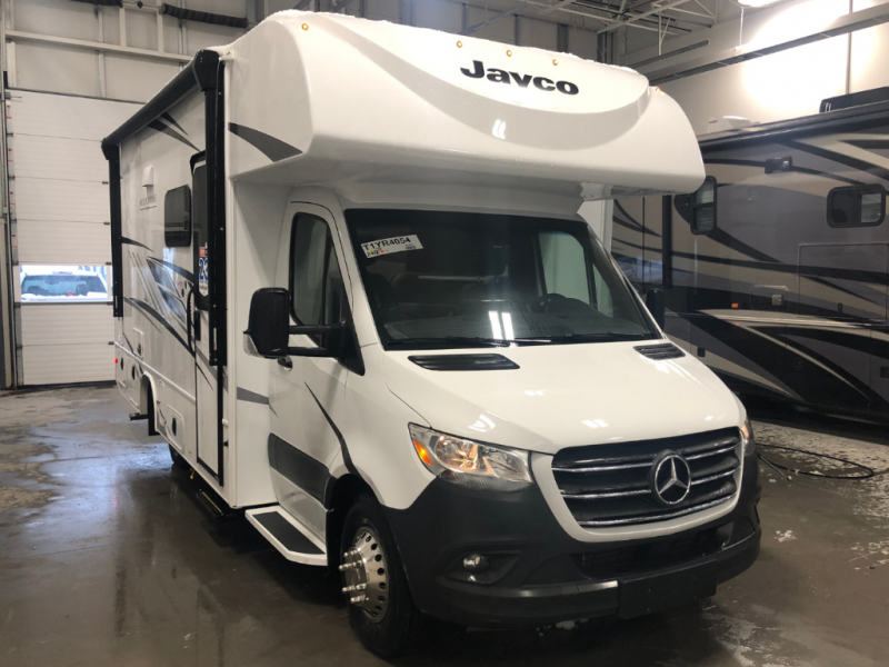 Each Melbourne Class C diesel motorhome by Jayco features durable Stronghold VBL lamination, bead-foam insulation, and a seamless front cap that resists wear and tear from the elements. The 2.0L Inline 4-cylinder twin turbo 211HP diesel engine with 332 ft. lb. torque will power your trips near and far, and the Mercedes-Benz chassis is ultra durable. There are seatbelts in all designated seating locations, and the captain's seats swivel around so they can become a part of the living area once parked. You'll appreciate the LP generator on board, as well as a 13,500 BTU A/C and a 30,000 BTU furnace to keep you comfortable year around. The interior of the Melbourne will have you feeling right at home with high-intensity LED lights, an 83" interior height with a padded vinyl ceiling, hardwood cabinet doors and drawers, and more!