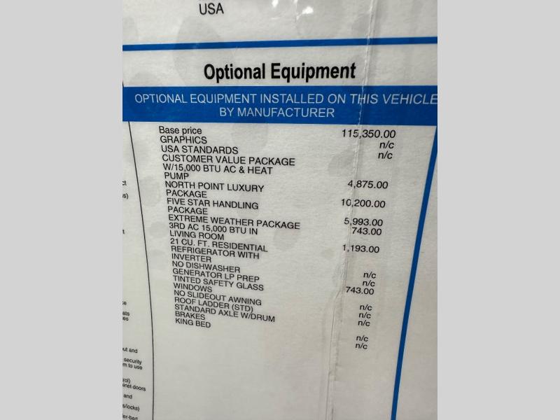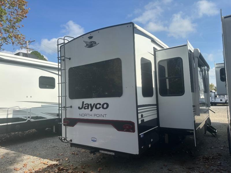 With any North Point fifth wheel by Jayco you begin with a strong foundation with a custom frame, designed and sized specifically to best support each unit. Constructed with Stronghold VBL™ aluminum framed, vacuum bond laminated walls and the Magnum Truss™ XL6™ roof system with an Alpha roof membrane system, which is the strongest tested roof in the industry. The 5-Star Handling package is included with Uniroyal tires, a MORryde rubber pin box, Dexter axles with Nev-R-Adjust brakes, MORryde CRE-3000 rubberized suspension and wet bolt fasteners and bronze bushings. The interior has handcrafted hardwood glazed doors and drawers, vinyl flooring throughout, an integrated under-mount sink in the main bathroom, plus so much more you just have to see one to believe it all!
