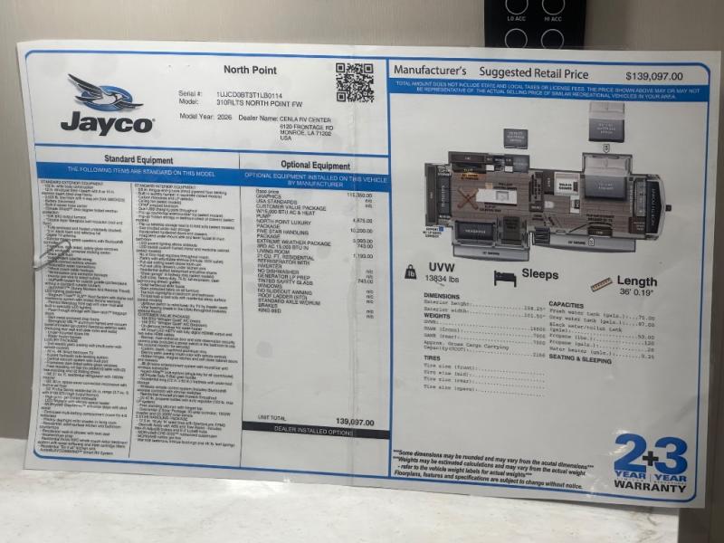New 2026 Jayco North Point 310RLTS Fifth Wheel