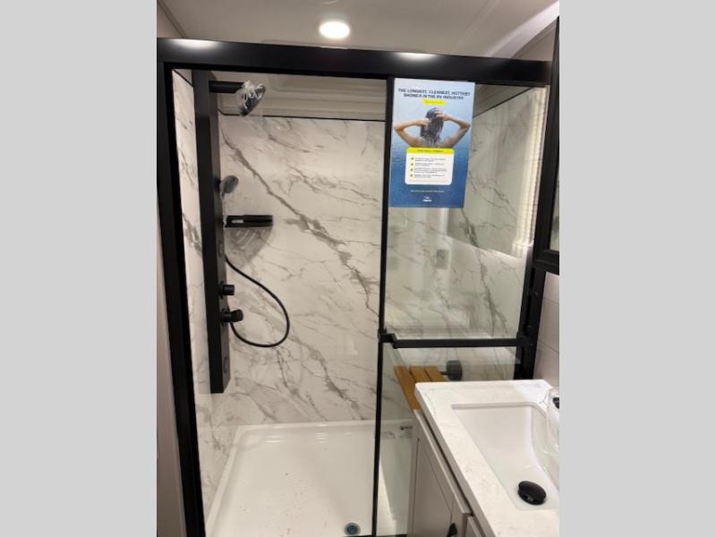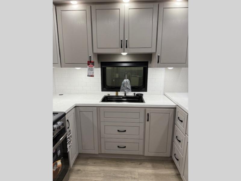 With any North Point fifth wheel by Jayco you begin with a strong foundation with a custom frame, designed and sized specifically to best support each unit. Constructed with Stronghold VBL™ aluminum framed, vacuum bond laminated walls and the Magnum Truss™ XL6™ roof system with an Alpha roof membrane system, which is the strongest tested roof in the industry. The 5-Star Handling package is included with Uniroyal tires, a MORryde rubber pin box, Dexter axles with Nev-R-Adjust brakes, MORryde CRE-3000 rubberized suspension and wet bolt fasteners and bronze bushings. The interior has handcrafted hardwood glazed doors and drawers, vinyl flooring throughout, an integrated under-mount sink in the main bathroom, plus so much more you just have to see one to believe it all!