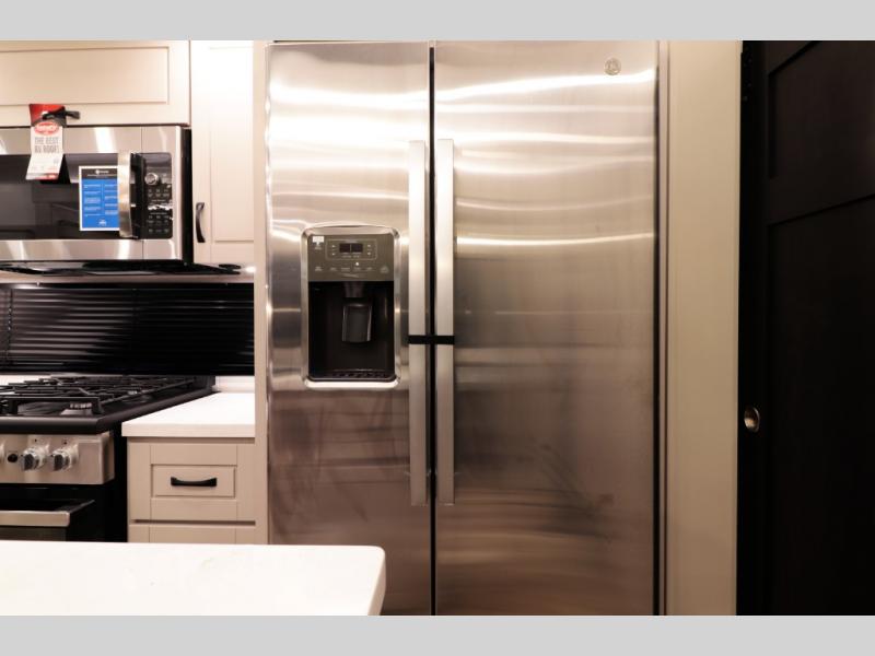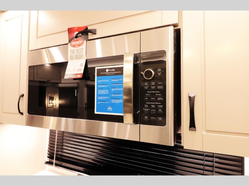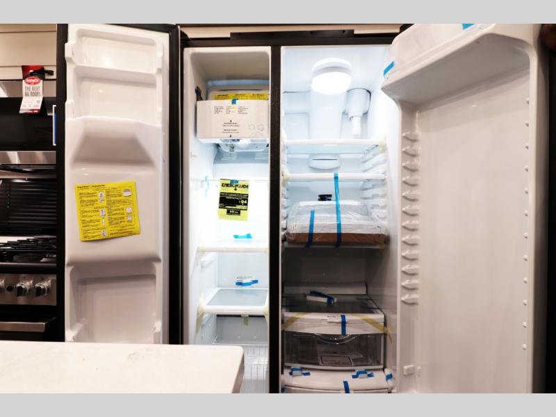 Residential 21 cu ft GE® refrigerator, 4-burner cooktop, convection microwave, kitchen island, ample pantry & cabinetry