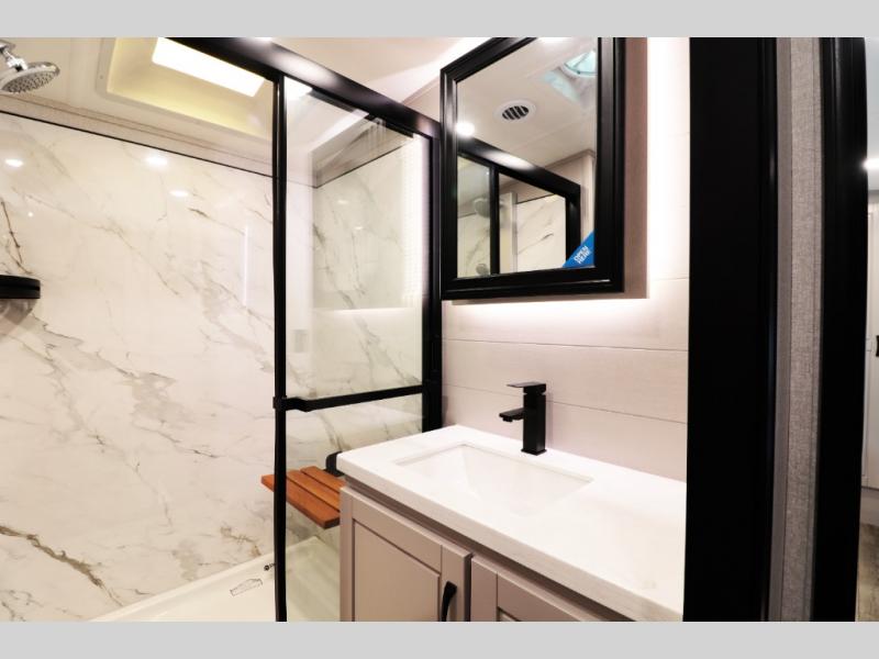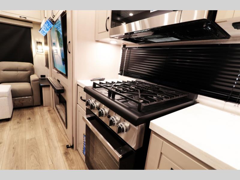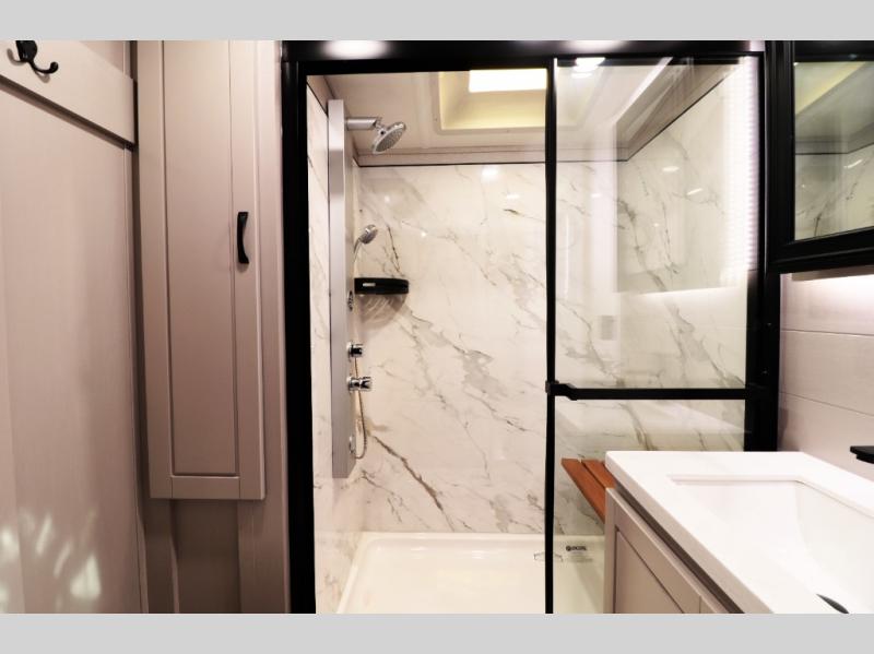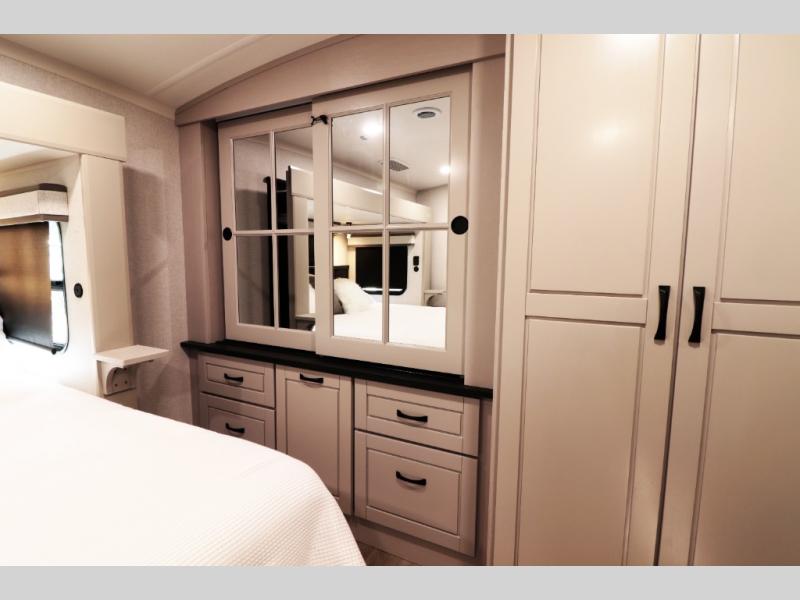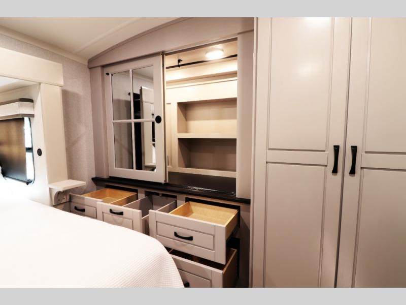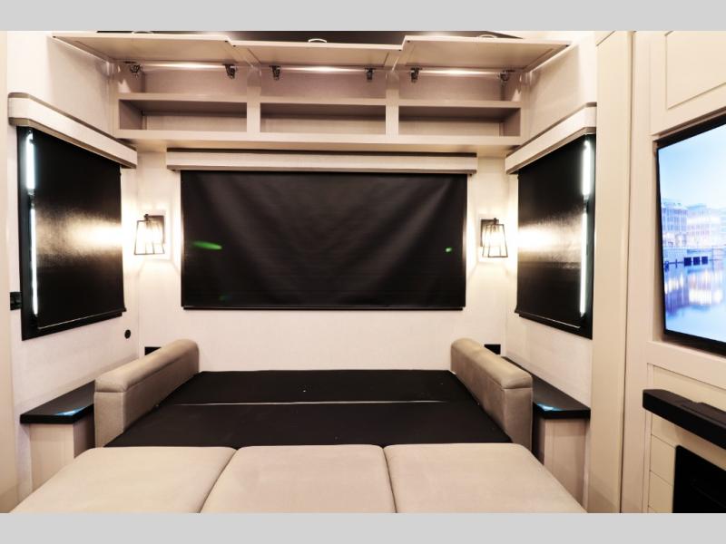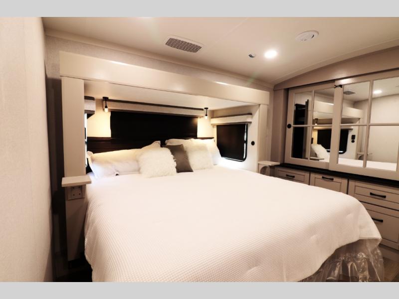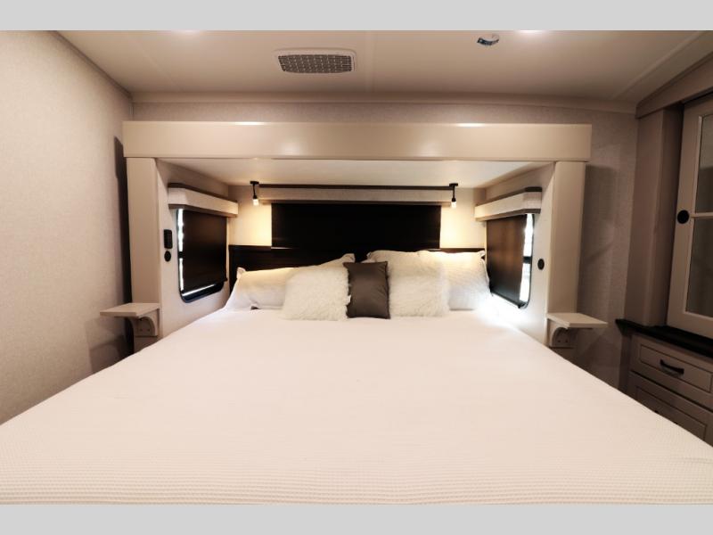 Luxurious master suite, quiet climate control, and high-end finishes give that “resort feel on wheels”