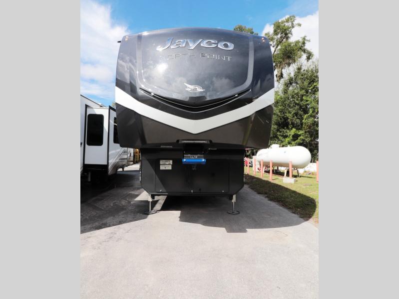 Shop the 2026 Jayco North Point 377RLBH at Campers Inn RV of Ocala—luxury, bunkhouse comfort, and all-season reliability for families and couples.