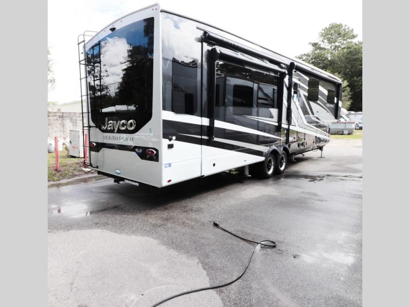 Welcome to the epitome of luxury RV living: the 2026 Jayco North Point 377RLBH, arriving soon at Campers Inn RV of Ocala. This isn’t just a fifth wheel — it’s a full-scale mobile estate designed to impress couples, families, and first-time RV buyers alike.