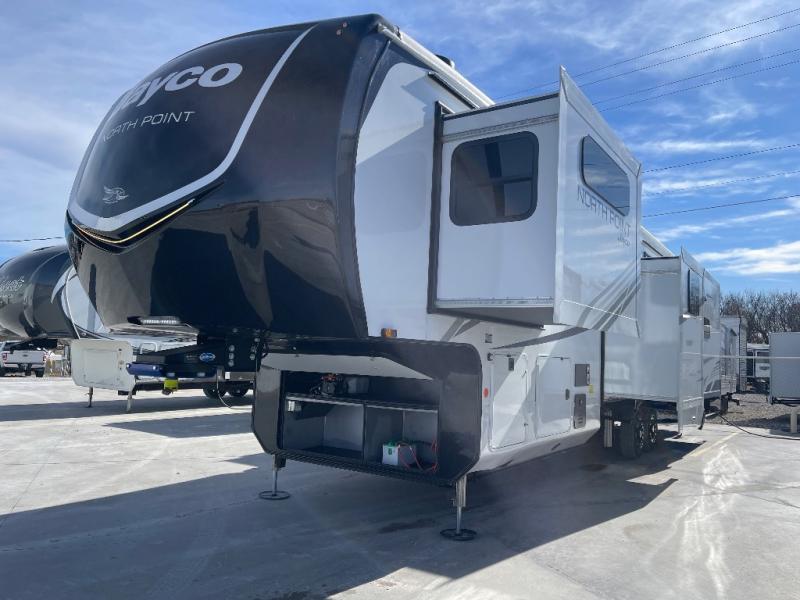 With any North Point fifth wheel by Jayco you begin with a strong foundation with a custom frame, designed and sized specifically to best support each unit. Constructed with Stronghold VBL™ aluminum framed, vacuum bond laminated walls and the Magnum Truss™ XL6™ roof system with an Alpha roof membrane system, which is the strongest tested roof in the industry. The 5-Star Handling package is included with Uniroyal tires, a MORryde rubber pin box, Dexter axles with Nev-R-Adjust brakes, MORryde CRE-3000 rubberized suspension and wet bolt fasteners and bronze bushings. The interior has handcrafted hardwood glazed doors and drawers, vinyl flooring throughout, an integrated under-mount sink in the main bathroom, plus so much more you just have to see one to believe it all!