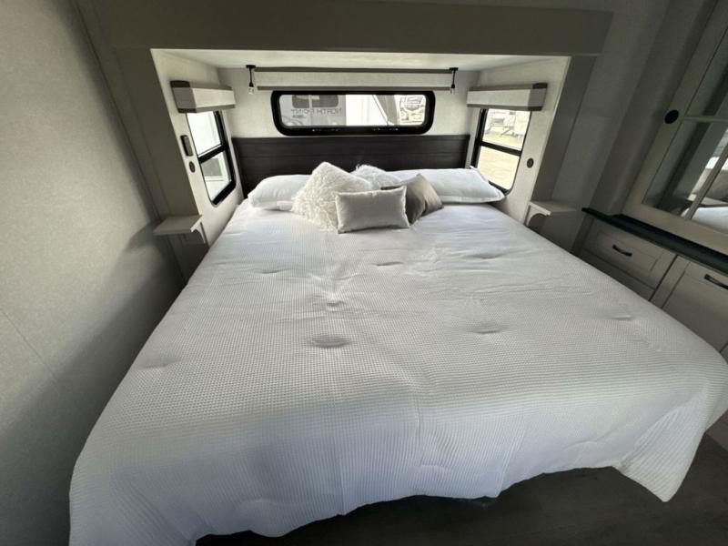 With any North Point fifth wheel by Jayco you begin with a strong foundation with a custom frame, designed and sized specifically to best support each unit. Constructed with Stronghold VBL™ aluminum framed, vacuum bond laminated walls and the Magnum Truss™ XL6™ roof system with an Alpha roof membrane system, which is the strongest tested roof in the industry. The 5-Star Handling package is included with Uniroyal tires, a MORryde rubber pin box, Dexter axles with Nev-R-Adjust brakes, MORryde CRE-3000 rubberized suspension and wet bolt fasteners and bronze bushings. The interior has handcrafted hardwood glazed doors and drawers, vinyl flooring throughout, an integrated under-mount sink in the main bathroom, plus so much more you just have to see one to believe it all!