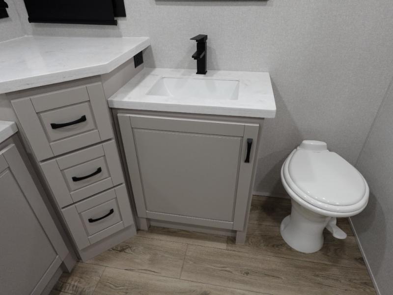 With any North Point fifth wheel by Jayco you begin with a strong foundation with a custom frame, designed and sized specifically to best support each unit. Constructed with Stronghold VBL™ aluminum framed, vacuum bond laminated walls and the Magnum Truss™ XL6™ roof system with an Alpha roof membrane system, which is the strongest tested roof in the industry. The 5-Star Handling package is included with Uniroyal tires, a MORryde rubber pin box, Dexter axles with Nev-R-Adjust brakes, MORryde CRE-3000 rubberized suspension and wet bolt fasteners and bronze bushings. The interior has handcrafted hardwood glazed doors and drawers, vinyl flooring throughout, an integrated under-mount sink in the main bathroom, plus so much more you just have to see one to believe it all!