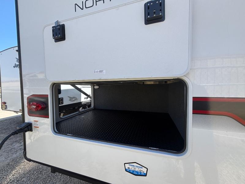 With any North Point fifth wheel by Jayco you begin with a strong foundation with a custom frame, designed and sized specifically to best support each unit. Constructed with Stronghold VBL™ aluminum framed, vacuum bond laminated walls and the Magnum Truss™ XL6™ roof system with an Alpha roof membrane system, which is the strongest tested roof in the industry. The 5-Star Handling package is included with Uniroyal tires, a MORryde rubber pin box, Dexter axles with Nev-R-Adjust brakes, MORryde CRE-3000 rubberized suspension and wet bolt fasteners and bronze bushings. The interior has handcrafted hardwood glazed doors and drawers, vinyl flooring throughout, an integrated under-mount sink in the main bathroom, plus so much more you just have to see one to believe it all!