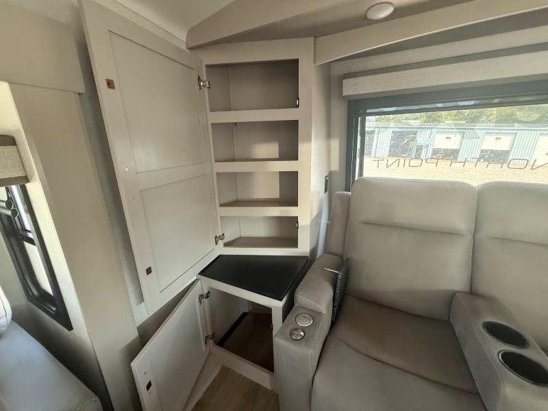 With any North Point fifth wheel by Jayco you begin with a strong foundation with a custom frame, designed and sized specifically to best support each unit. Constructed with Stronghold VBL™ aluminum framed, vacuum bond laminated walls and the Magnum Truss™ XL6™ roof system with an Alpha roof membrane system, which is the strongest tested roof in the industry. The 5-Star Handling package is included with Uniroyal tires, a MORryde rubber pin box, Dexter axles with Nev-R-Adjust brakes, MORryde CRE-3000 rubberized suspension and wet bolt fasteners and bronze bushings. The interior has handcrafted hardwood glazed doors and drawers, vinyl flooring throughout, an integrated under-mount sink in the main bathroom, plus so much more you just have to see one to believe it all!