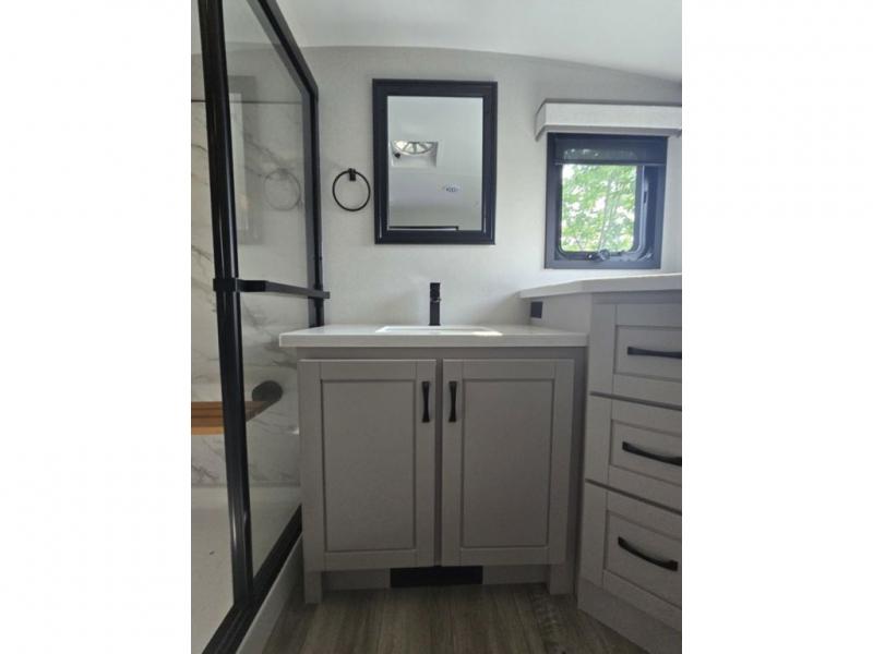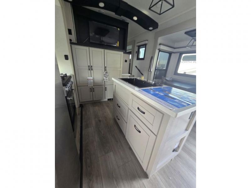 With any North Point fifth wheel by Jayco you begin with a strong foundation with a custom frame, designed and sized specifically to best support each unit. Constructed with Stronghold VBL™ aluminum framed, vacuum bond laminated walls and the Magnum Truss™ XL6™ roof system with an Alpha roof membrane system, which is the strongest tested roof in the industry. The 5-Star Handling package is included with Uniroyal tires, a MORryde rubber pin box, Dexter axles with Nev-R-Adjust brakes, MORryde CRE-3000 rubberized suspension and wet bolt fasteners and bronze bushings. The interior has handcrafted hardwood glazed doors and drawers, vinyl flooring throughout, an integrated under-mount sink in the main bathroom, plus so much more you just have to see one to believe it all!