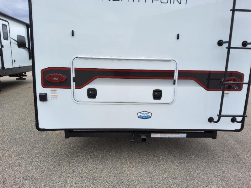 With any North Point fifth wheel by Jayco you begin with a strong foundation with a custom frame, designed and sized specifically to best support each unit. Constructed with Stronghold VBL™ aluminum framed, vacuum bond laminated walls and the Magnum Truss™ XL6™ roof system with an Alpha roof membrane system, which is the strongest tested roof in the industry. The 5-Star Handling package is included with Uniroyal tires, a MORryde rubber pin box, Dexter axles with Nev-R-Adjust brakes, MORryde CRE-3000 rubberized suspension and wet bolt fasteners and bronze bushings. The interior has handcrafted hardwood glazed doors and drawers, vinyl flooring throughout, an integrated under-mount sink in the main bathroom, plus so much more you just have to see one to believe it all!