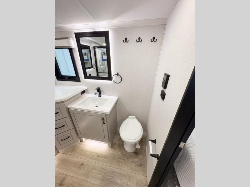 With any North Point fifth wheel by Jayco you begin with a strong foundation with a custom frame, designed and sized specifically to best support each unit. Constructed with Stronghold VBL™ aluminum framed, vacuum bond laminated walls and the Magnum Truss™ XL6™ roof system with an Alpha roof membrane system, which is the strongest tested roof in the industry. The 5-Star Handling package is included with Uniroyal tires, a MORryde rubber pin box, Dexter axles with Nev-R-Adjust brakes, MORryde CRE-3000 rubberized suspension and wet bolt fasteners and bronze bushings. The interior has handcrafted hardwood glazed doors and drawers, vinyl flooring throughout, an integrated under-mount sink in the main bathroom, plus so much more you just have to see one to believe it all!