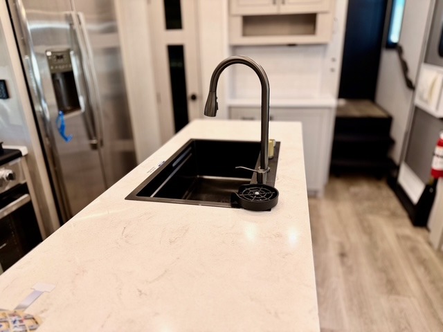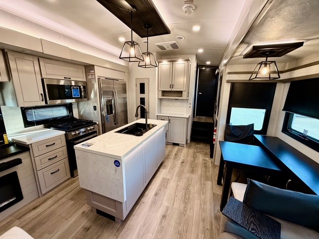 With any North Point fifth wheel by Jayco you begin with a strong foundation with a custom frame, designed and sized specifically to best support each unit. Constructed with Stronghold VBL™ aluminum framed, vacuum bond laminated walls and the Magnum Truss™ XL6™ roof system with an Alpha roof membrane system, which is the strongest tested roof in the industry. The 5-Star Handling package is included with Uniroyal tires, a MORryde rubber pin box, Dexter axles with Nev-R-Adjust brakes, MORryde CRE-3000 rubberized suspension and wet bolt fasteners and bronze bushings. The interior has handcrafted hardwood glazed doors and drawers, vinyl flooring throughout, an integrated under-mount sink in the main bathroom, plus so much more you just have to see one to believe it all!