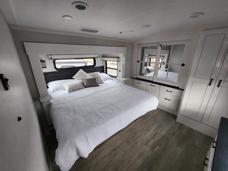 SILVER METALLIC FULL BODY PAINT, SILVER METALLIC PAINT AWNING, CUSTOMER VALUE PACKAGE, PINNACLE LUXURY PACKAGE, FIVE STAR HANDLING PACKAGE, ROOF VENT, 21CU FT RESIDENTAL REFER WITH INVERTER, GEN LP PREP, TINTED SAFETY GLASS WINDOWS, STD AXLE WITH DRUM BRAKES, KING BED