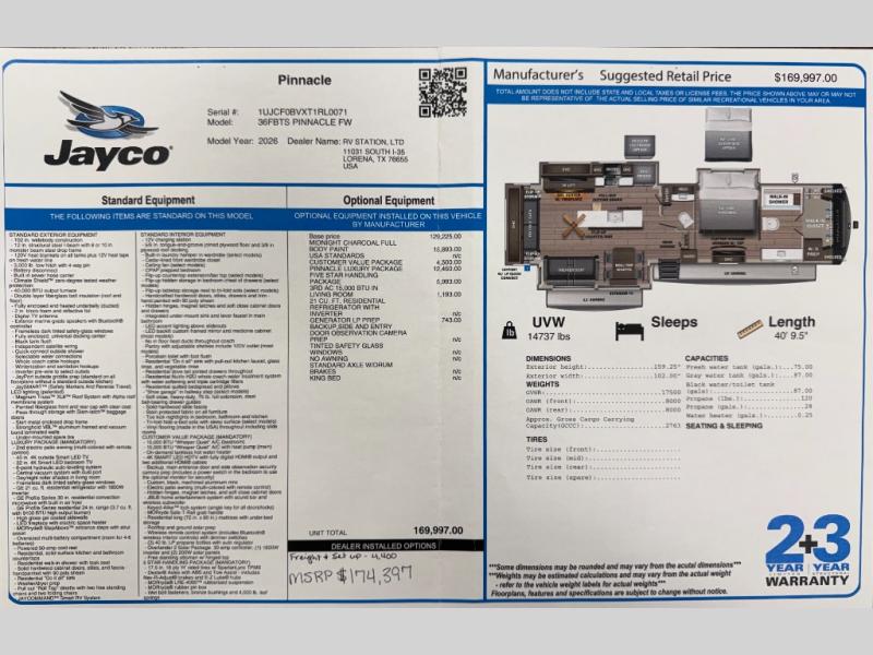 New 2026 Jayco Pinnacle 36FBTS Fifth Wheel