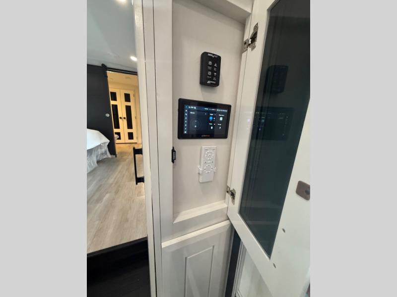Each Pinnacle fifth wheel features Stronghold VBL lamination for the lightest, yet strongest construction in the RV industry. Add that to the Magnum Truss XL6 roof system and Climate Shield zero-degree tested weather protection and you'll be enjoying your fifth wheel for years to come. Some of the exterior conveniences you will appreciate are the Keyed-Alike lock system, the fully enclosed, universal docking center, and the 6-point hydraulic auto-leveling system for quick and easy set up. The 5 Star Handling Package will make towing a fifth wheel a walk in the park, and the two Whisper Quiet A/C units will keep you comfortable during the hot summer months. Inside, you'll enjoy the residential "Do it all" sink with pull-out kitchen faucet, glass rinse, and vegetable rinse, the handcrafted hardwood glazed cabinetry, the vinyl flooring throughout, plus many more comforts. There is even a central vacuum system, a wireless remote control system, USB ports throughout, plus many more conveniences to make each trip enjoyable.
