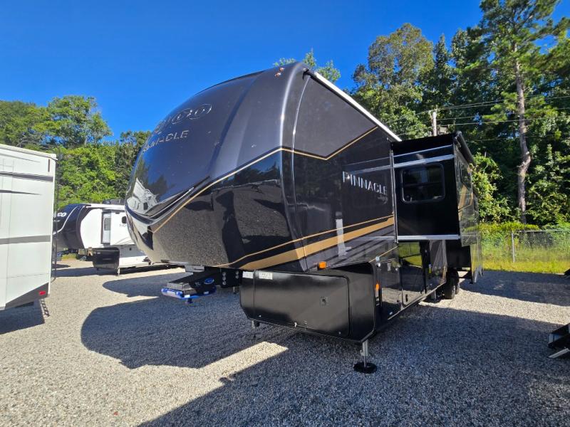 The Pinnacle 38FBRK is built for RVers who want the ultimate in luxury and functionality. With its rear kitchen, bath-and-a-half layout, and massive master suite with a walk-in closet, it feels like a true rolling estate — perfect for full-timers or extended-stay travelers.