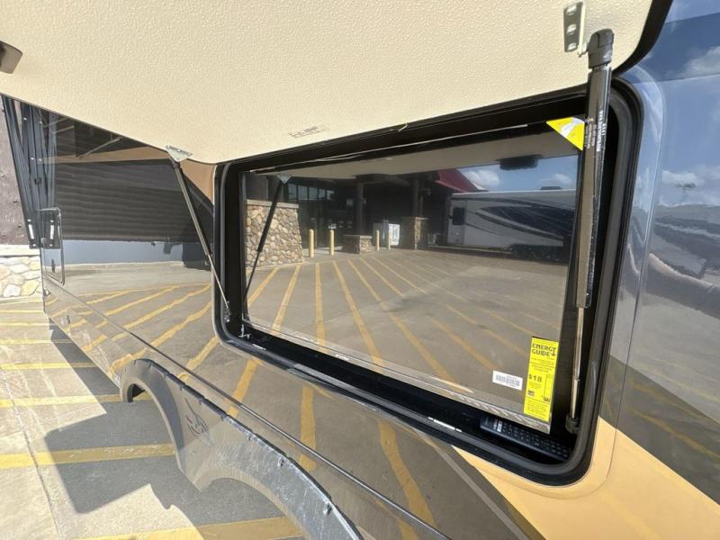 Each Pinnacle fifth wheel features Stronghold VBL lamination for the lightest, yet strongest construction in the RV industry. Add that to the Magnum Truss XL6 roof system and Climate Shield zero-degree tested weather protection and you'll be enjoying your fifth wheel for years to come. Some of the exterior conveniences you will appreciate are the Keyed-Alike lock system, the fully enclosed, universal docking center, and the 6-point hydraulic auto-leveling system for quick and easy set up. The 5 Star Handling Package will make towing a fifth wheel a walk in the park, and the two Whisper Quiet A/C units will keep you comfortable during the hot summer months. Inside, you'll enjoy the residential "Do it all" sink with pull-out kitchen faucet, glass rinse, and vegetable rinse, the handcrafted hardwood glazed cabinetry, the vinyl flooring throughout, plus many more comforts. There is even a central vacuum system, a wireless remote control system, USB ports throughout, plus many more conveniences to make each trip enjoyable.
