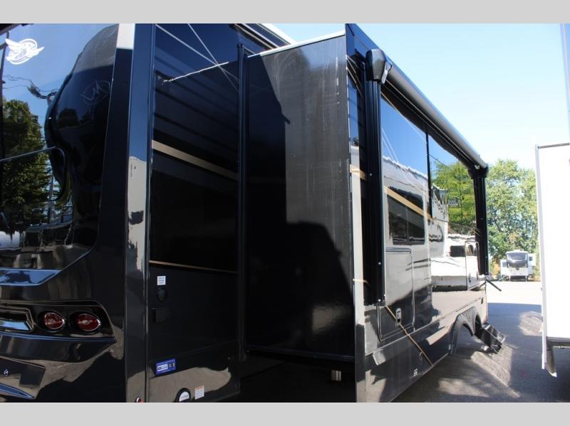 Each Pinnacle fifth wheel features Stronghold VBL lamination for the lightest, yet strongest construction in the RV industry. Add that to the Magnum Truss XL6 roof system and Climate Shield zero-degree tested weather protection and you'll be enjoying your fifth wheel for years to come. Some of the exterior conveniences you will appreciate are the Keyed-Alike lock system, the fully enclosed, universal docking center, and the 6-point hydraulic auto-leveling system for quick and easy set up. The 5 Star Handling Package will make towing a fifth wheel a walk in the park, and the two Whisper Quiet A/C units will keep you comfortable during the hot summer months. Inside, you'll enjoy the residential "Do it all" sink with pull-out kitchen faucet, glass rinse, and vegetable rinse, the handcrafted hardwood glazed cabinetry, the vinyl flooring throughout, plus many more comforts. There is even a central vacuum system, a wireless remote control system, USB ports throughout, plus many more conveniences to make each trip enjoyable.