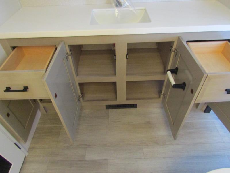 Each Pinnacle fifth wheel features Stronghold VBL lamination for the lightest, yet strongest construction in the RV industry. Add that to the Magnum Truss XL6 roof system and Climate Shield zero-degree tested weather protection and you'll be enjoying your fifth wheel for years to come. Some of the exterior conveniences you will appreciate are the Keyed-Alike lock system, the fully enclosed, universal docking center, and the 6-point hydraulic auto-leveling system for quick and easy set up. The 5 Star Handling Package will make towing a fifth wheel a walk in the park, and the two Whisper Quiet A/C units will keep you comfortable during the hot summer months. Inside, you'll enjoy the residential "Do it all" sink with pull-out kitchen faucet, glass rinse, and vegetable rinse, the handcrafted hardwood glazed cabinetry, the vinyl flooring throughout, plus many more comforts. There is even a central vacuum system, a wireless remote control system, USB ports throughout, plus many more conveniences to make each trip enjoyable.