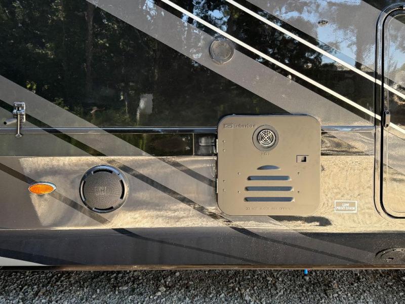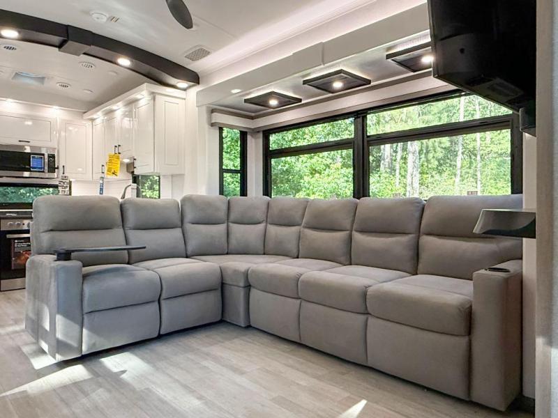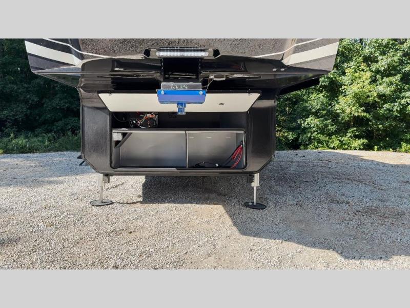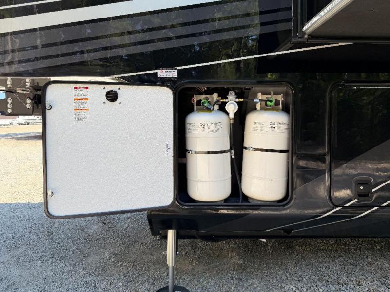 Each Pinnacle fifth wheel features Stronghold VBL lamination for the lightest, yet strongest construction in the RV industry. Add that to the Magnum Truss XL6 roof system and Climate Shield zero-degree tested weather protection and you'll be enjoying your fifth wheel for years to come. Some of the exterior conveniences you will appreciate are the Keyed-Alike lock system, the fully enclosed, universal docking center, and the 6-point hydraulic auto-leveling system for quick and easy set up. The 5 Star Handling Package will make towing a fifth wheel a walk in the park, and the two Whisper Quiet A/C units will keep you comfortable during the hot summer months. Inside, you'll enjoy the residential "Do it all" sink with pull-out kitchen faucet, glass rinse, and vegetable rinse, the handcrafted hardwood glazed cabinetry, the vinyl flooring throughout, plus many more comforts. There is even a central vacuum system, a wireless remote control system, USB ports throughout, plus many more conveniences to make each trip enjoyable.