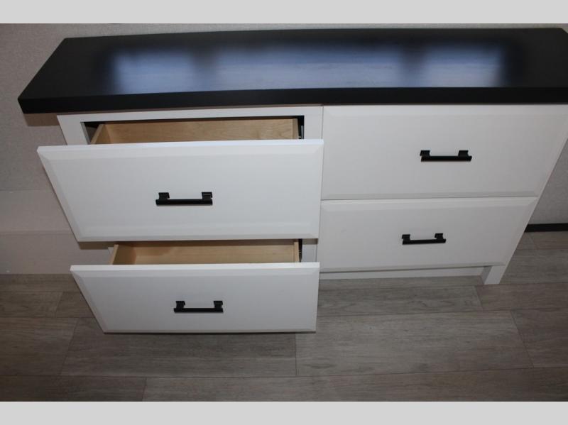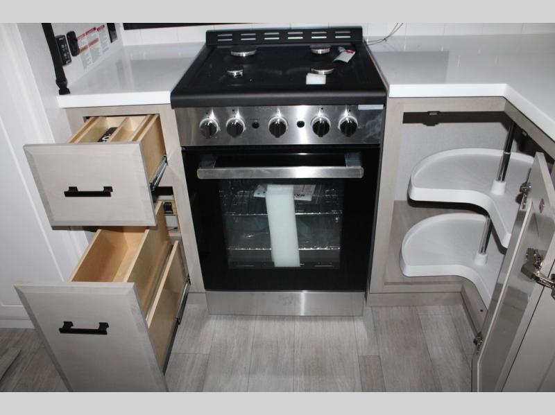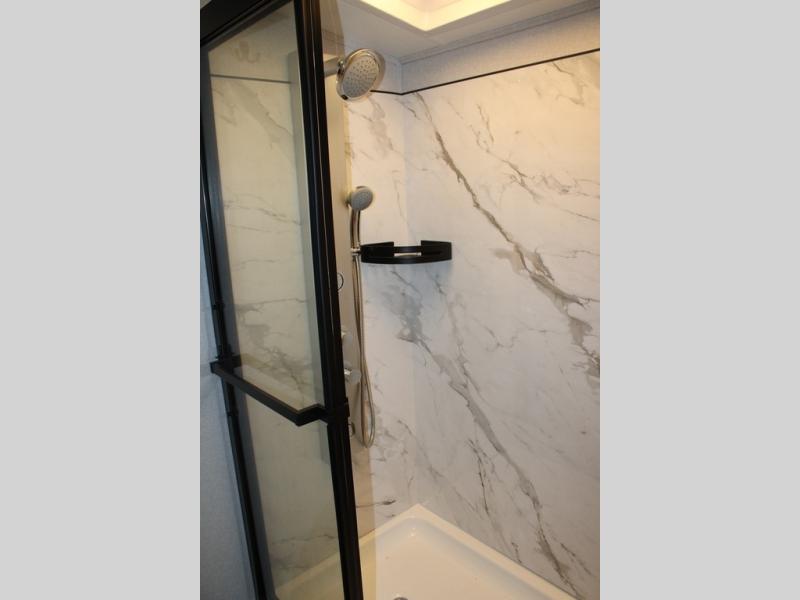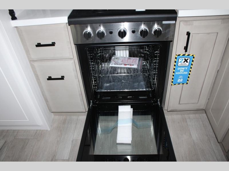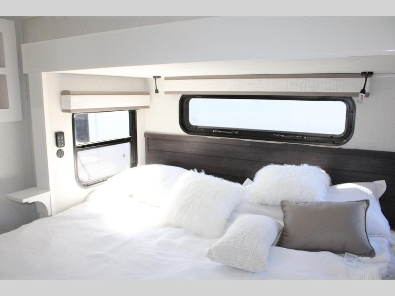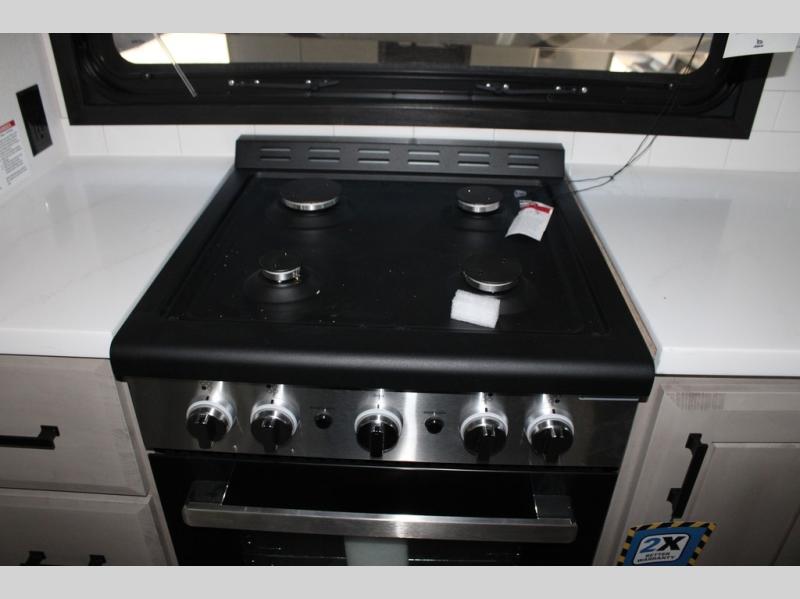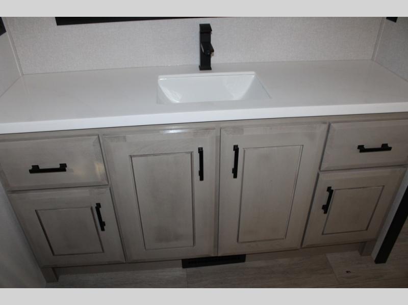 Each Pinnacle fifth wheel features Stronghold VBL lamination for the lightest, yet strongest construction in the RV industry. Add that to the Magnum Truss XL6 roof system and Climate Shield zero-degree tested weather protection and you'll be enjoying your fifth wheel even in harsh weather. Some of the exterior conveniences you will appreciate are the Keyed-Alike lock system, the fully enclosed, universal docking center, and the 6-point hydraulic auto-leveling system for quick and easy set up. The 5 Star Handling Package will make towing a fifth wheel a walk in the park, and the two Whisper Quiet A/C units will keep you comfortable during the hot summer months. Inside, you'll enjoy the residential "Do it all" sink, the solid hardwood cabinet doors, stiles, and fascia, the vinyl flooring throughout, plus many more comforts. There is even a central vacuum system, a wireless remote-control system, 12V charging station, plus many more conveniences to make each trip enjoyable.
